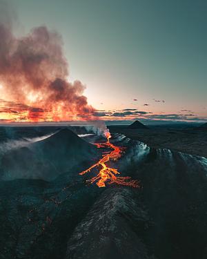The endless summer nights in Iceland make up for mesmerizing scenes and colors, especially when you are lucky enough to have an active volcano in the foreground.